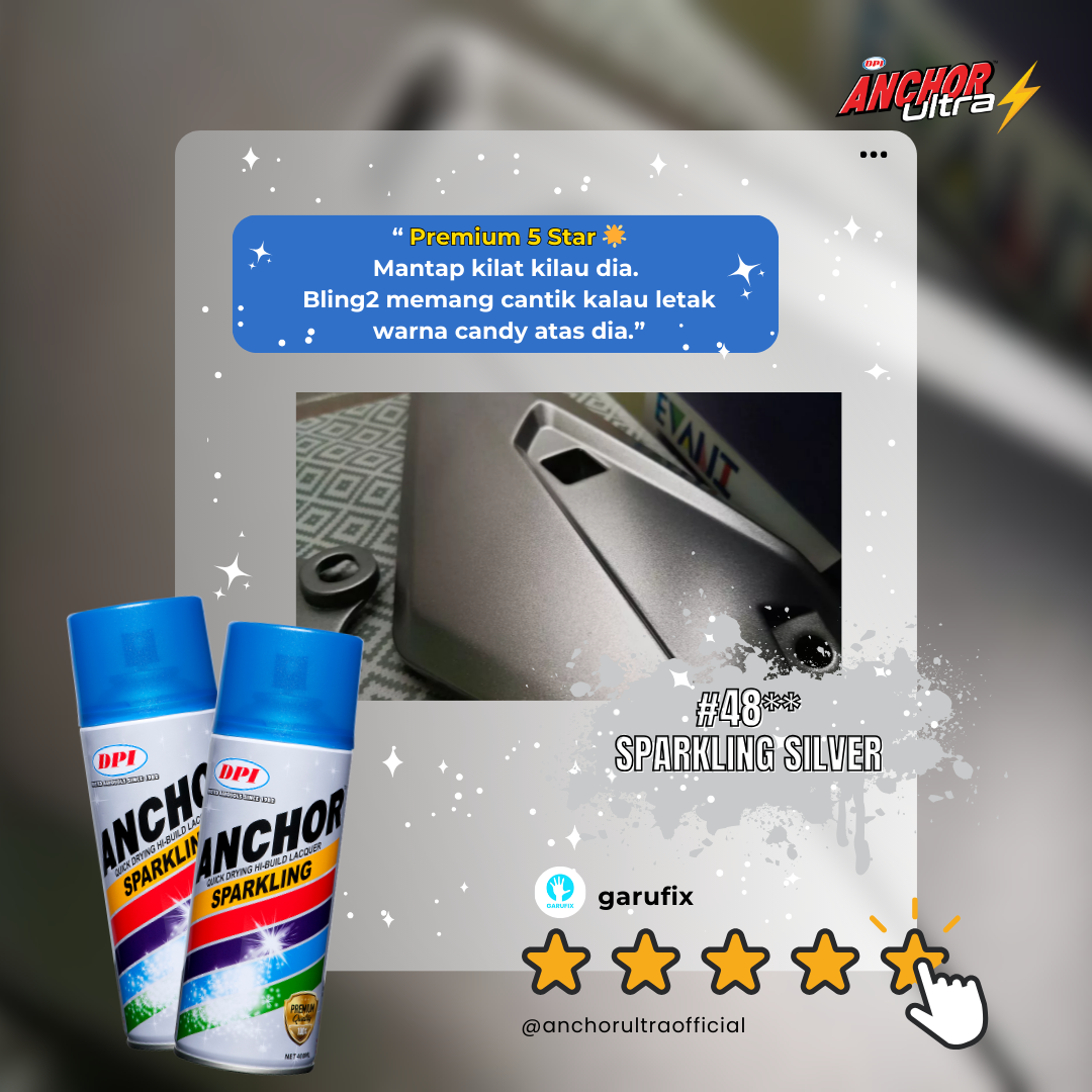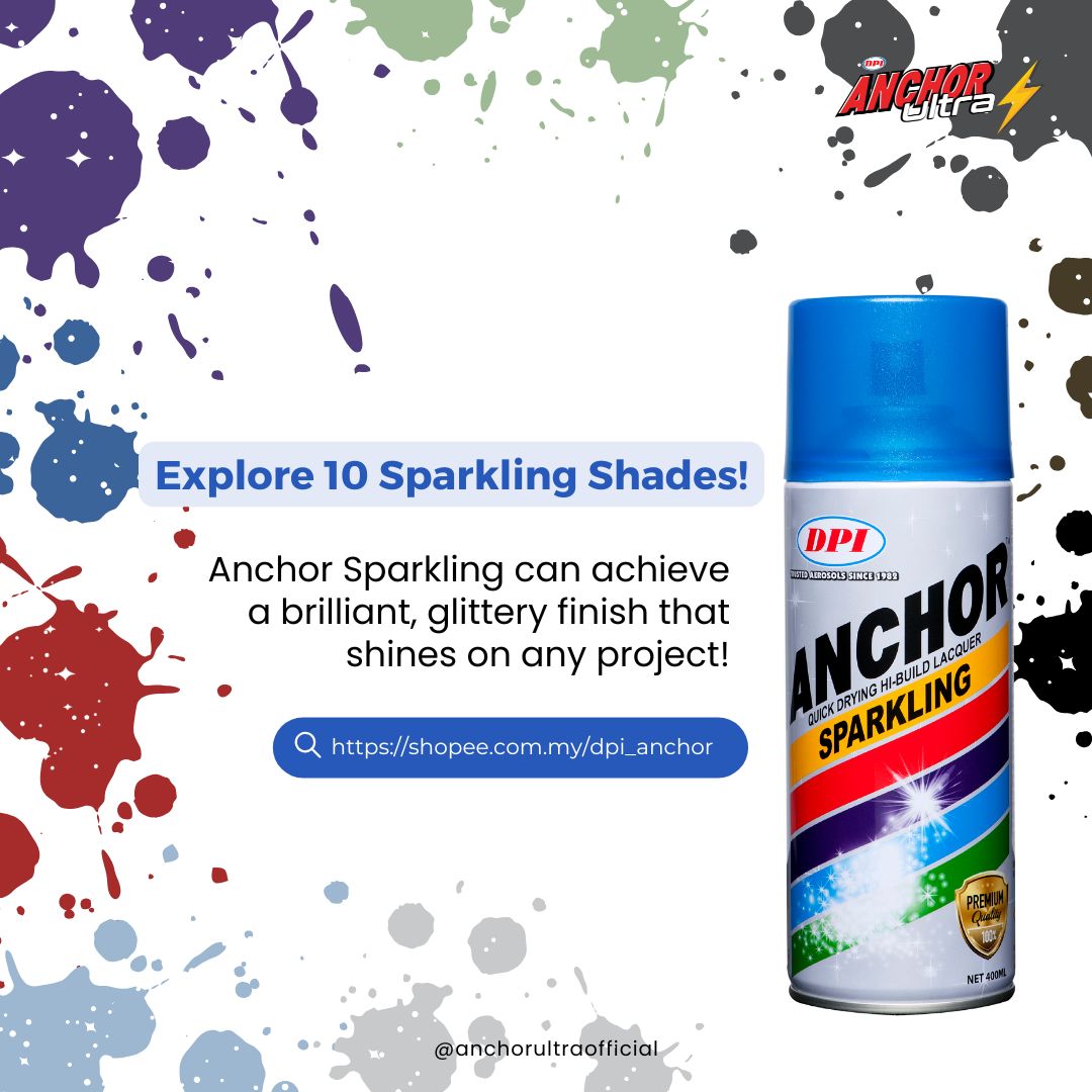 Anchor Sparkling contains glitter or shimmer to create a decorative, eye-catching sparkle on surfaces. It’s perfect for arts, crafts, and DIY projects, adding glamour and shimmer to items.
